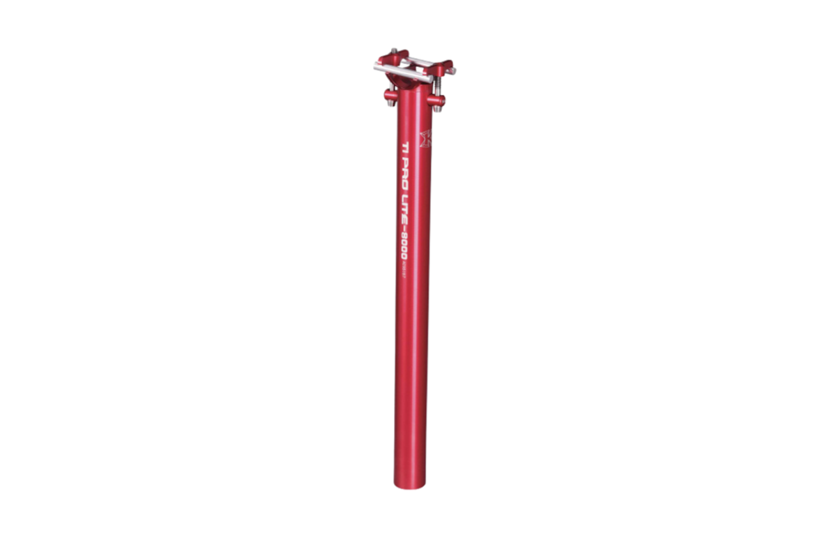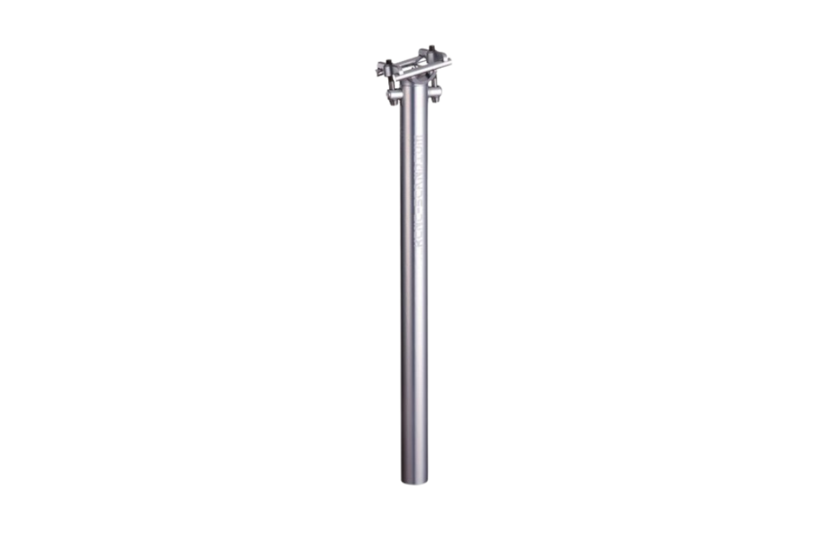Sattelstütze aus dem High-Tech Material Scandium 7451 mit Titanschrauben und einer Sattelklemme aus 7075 Aluminium.